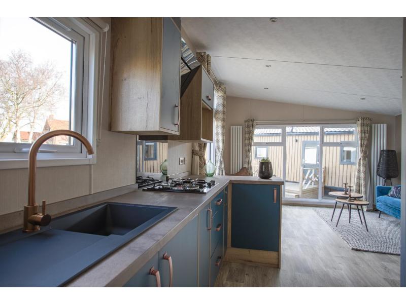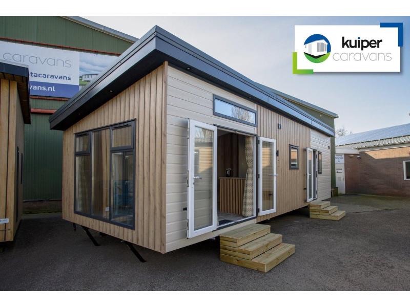 Nu te koop bij Kuiper Caravans in Noord-Holland met of zonder staanplaats: Chalet Boa Vista, een stijlvolle oase met een moderne twist.