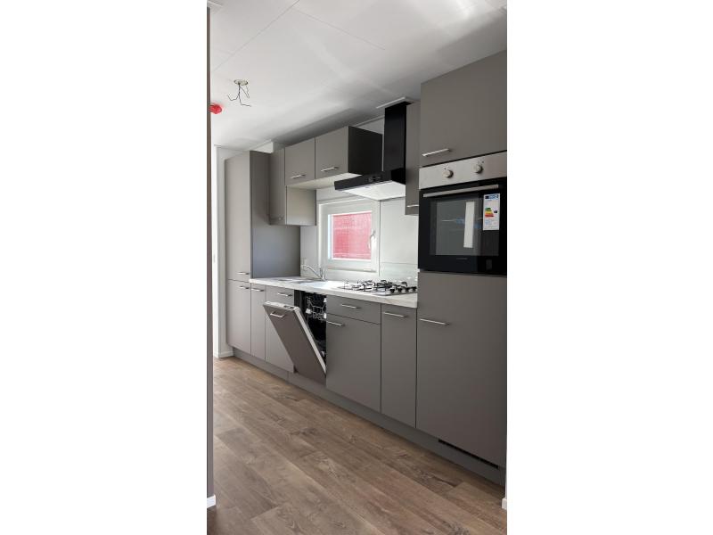 De keuken is volledig uitgerust en klaar voor culinaire avonturen! Je vindt er een koelkast met vriesvak, een combimagnetron, een gasfornuis met afzuigkap én, als kers op de taart, een vaatwasser, perfect voor een langer verblijf. Bovendien biedt de keuken voldoende opbergruimte om al je keukenspullen netjes te organiseren.