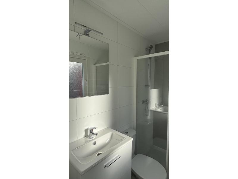 Compact maar compleet, voorzien van douchecabine, toilet en wastafelmeubel.