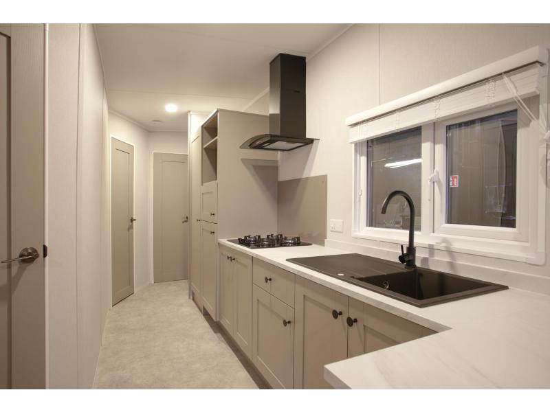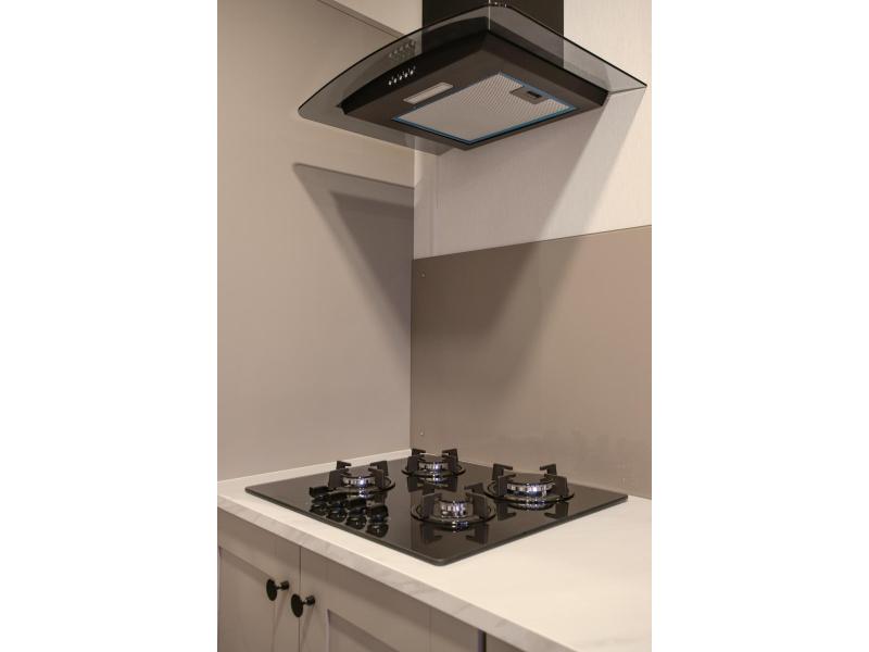 Binnen komt alles samen: stijlvol, praktisch en oog voor detail. De keuken heeft lichte taupe kastfronten, een marmerlook werkblad en zwarte accenten die het geheel een frisse uitstraling geven. De woonkamer en slaapkamers zijn slim ingedeeld, met volop opbergruimte.