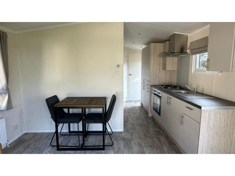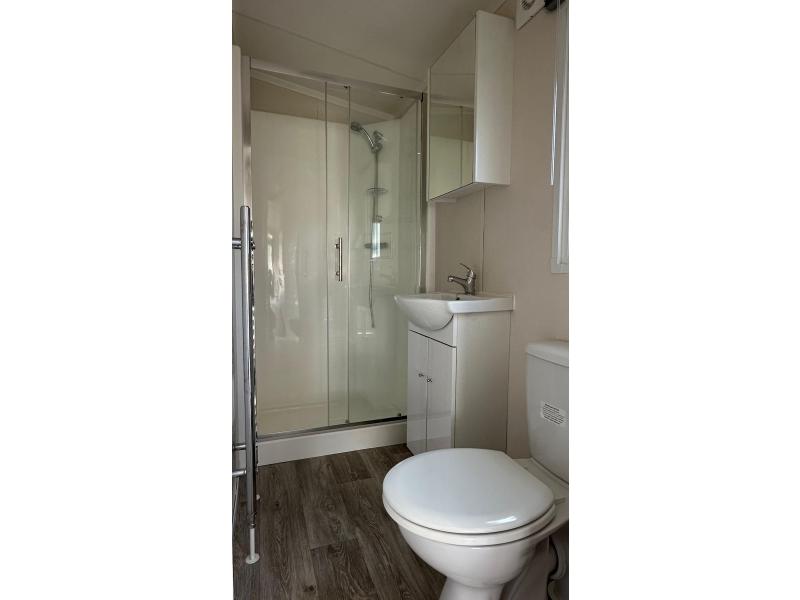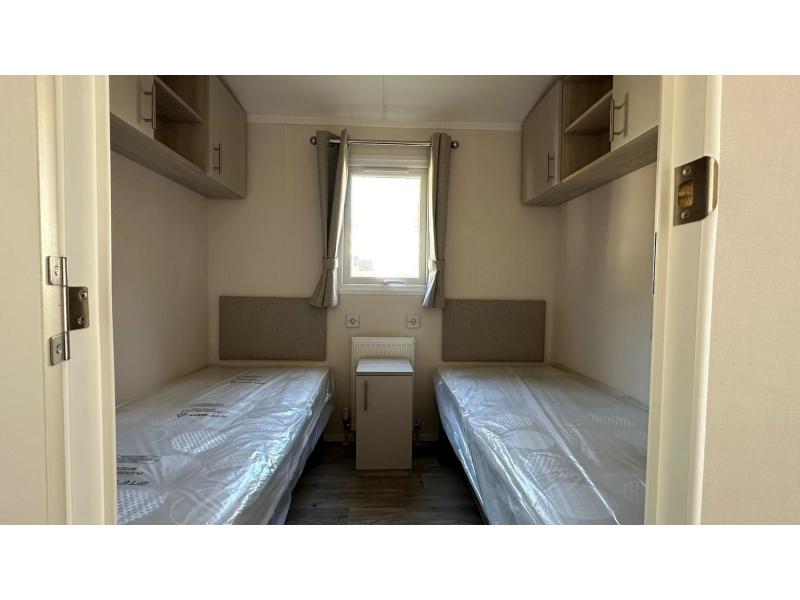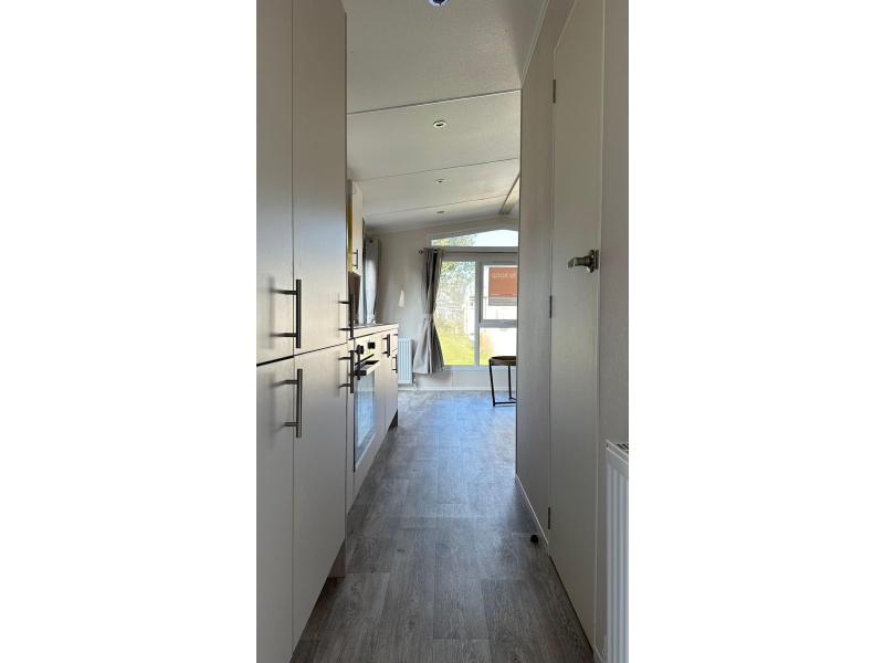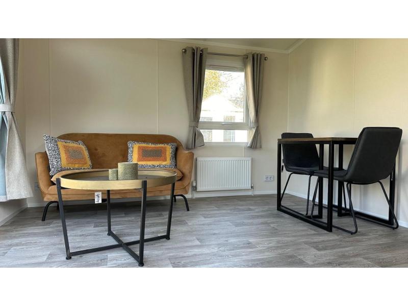 Het prachtige Paulo chalet, wat op kavel 155 geplaatst is, biedt met zijn grote raampartijen en dubbele terrasdeuren veel natuurlijk licht. Er is een verhoogd plafond met spots, designradiatoren en een tv-aansluiting. Verwarming middels centrale verwarming.