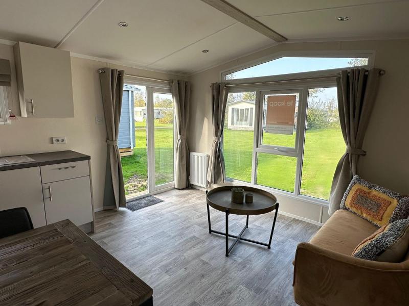Dit nieuwe kunststof Chalet Paulo staat te koop op Vakantiepark de Kuilart kavel 155 in Koudum Friesland.