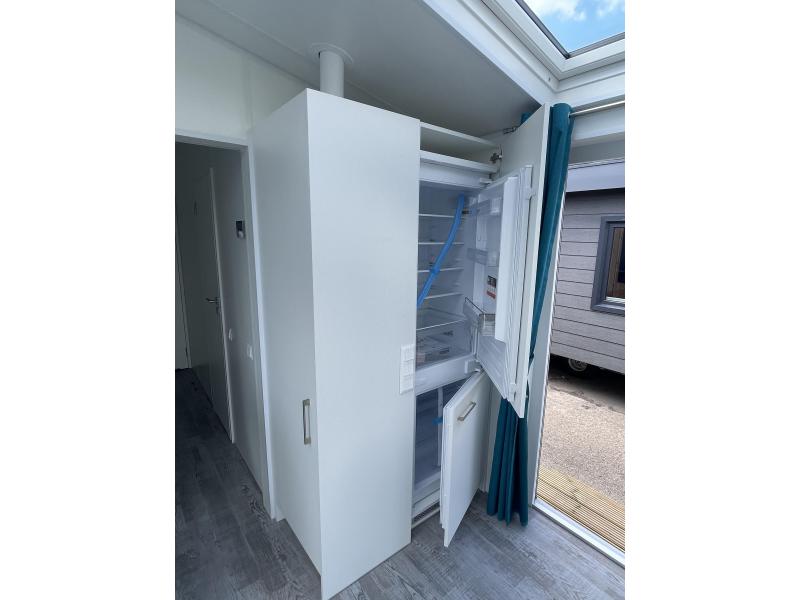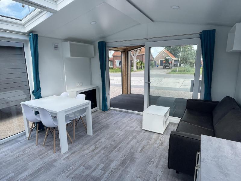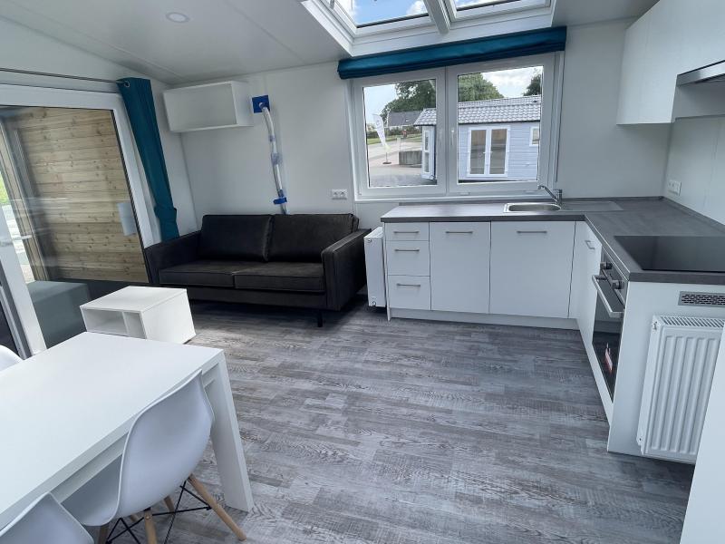 Dit chalet is voorzien van 15 centimeter dikke isolatie wanden, vloer en dak waardoor het duurzaam is. De woonkamer is voorzien van verhoogd plafond en de schuifpui (draai/kiep) biedt direct toegang tot de riante veranda met overkapping, een directe verlenging van de woonkamer. Standaard voorzien van koel/vriescombinatie, oven en vaatwasser. In de woonkamer zijn maar liefst 8 dakramen geplaatst wat een geweldig effect geeft in de living! Het inpandige terras maakt dit model echt af!