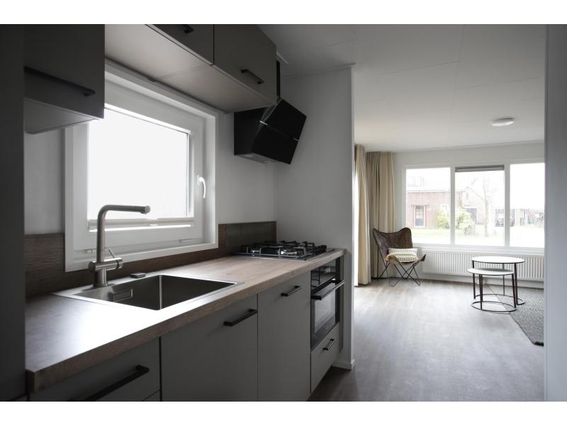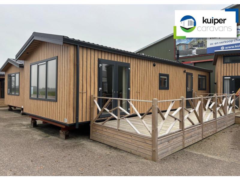 "Chalet Maeve" met kunststof buitenbeplating, dubbele beglazing en kunststof kozijnen, alles wat je nodig hebt voor een aangenaam verblijf. Dit ruime chalet van 11.50 x 4.00 meter biedt twee sfeervolle slaapkamers, een gezellige woonkamer, een volledig uitgeruste keuken en een moderne badkamer.