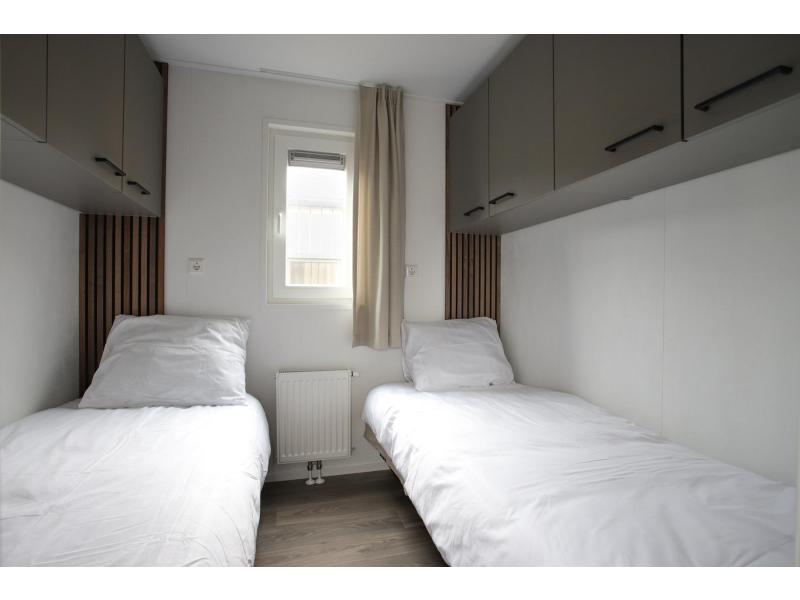 Dit chalet heeft twee slaapkamers. De eerste slaapkamer, ook wel de master bedroom genoemd, is uitgerust met een grote inbouwkast en een ruim tweepersoonsbed. De tweede slaapkamer heeft twee eenpersoonsbedden, met aan beide zijden opbergkasten.