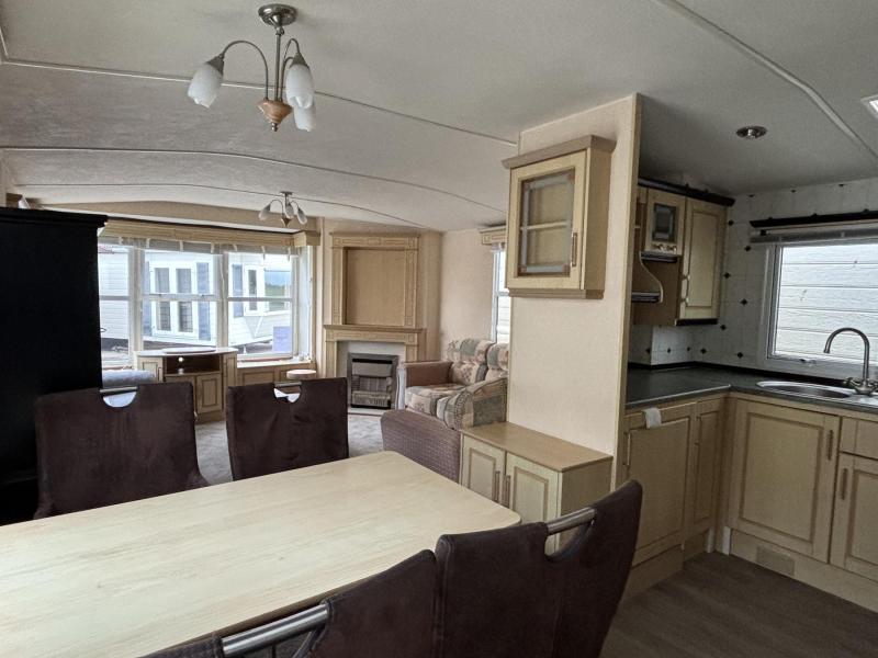 Atlas Debonaire, ein Spitzdach-Chalet mit Doppelverglasung zu verkaufen. Beim Betreten werden Sie von der schönen U-förmigen Küche mit Gasherd und Dunstabzugshaube, Kühlschrank, Spüle und Backofen-/Grillkombination überrascht sein. Angrenzend befindet sich das geräumige Wohnzimmer mit zwei großen Sofas, einem Gaskamin, einem großen Schrank und einem Esstisch. Wenn Sie die Halle betreten, befinden sich von links nach rechts folgende Räume: