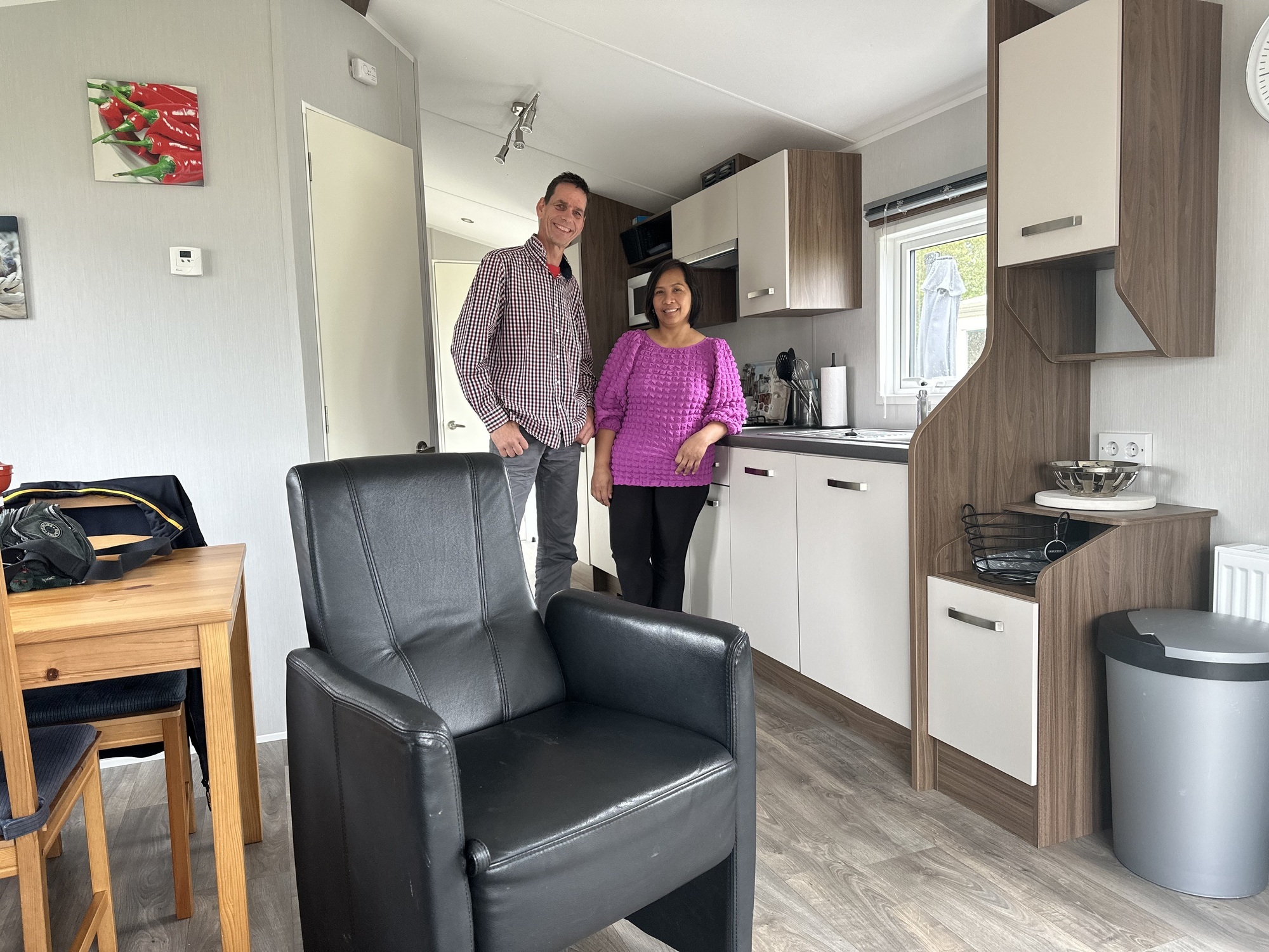 Empy vult aan dat de sfeer vanaf de eerste kennismaking ‘aangenaam was’. ,,De uitstraling van het bedrijf is echt anders dan bij andere ondernemingen in de branche. De warmte en vriendelijkheid straalt ervan af. En je wordt simpelweg goed geïnformeerd. Het eerste nieuwe chalet waar we voor kozen was een type Vienna. Rob dacht, toen hij onze wensen gehoord had, dat dit model in de smaak zou vallen. Hij had dat goed aangevoeld want ik was er op slag verliefd op. De ruime woonkamer met open keuken en het brede gangpad vielen bij mij direct op. Daarnaast zijn ook de badkamer en de slaapkamer mooi afgewerkt.”