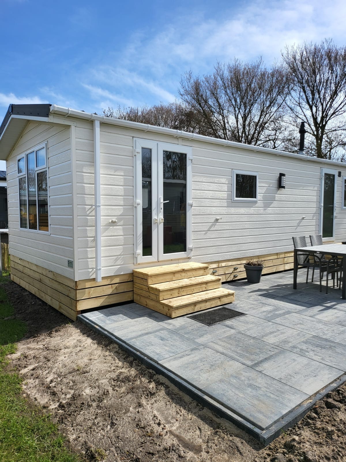 Het waren die uitstekende ervaringen die in combinatie met een financiële meevaller ervoor zorgden dat Ben en Empy al vrij snel daarna een tweede chalet bij Kuiper Caravans kochten. ,,Deze was niet voor onszelf maar voor de verhuur bedoeld”, verklaart Ben. ,,Omdat hij geplaatst zou worden op een plek met uitzicht over de Waddenzee wilden we een uitvoering met grote raampartijen. Rob hoorde ons verhaal en adviseerde het type Paulo en opnieuw was het een schot in de roos. De grote ramen van dit type vallen nog eens extra op omdat de kozijnen antraciet van kleur zijn.”