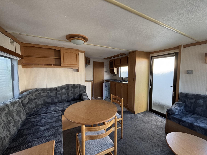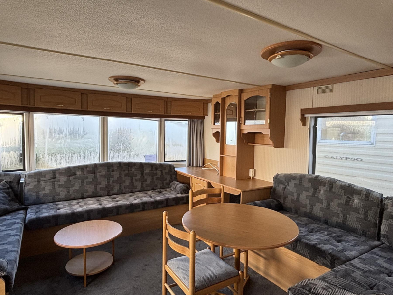 Deze Ascot stacaravan is direct beschikbaar, klaar voor een nieuwe bestemming. Dit model is 9 meter lang en 3,5 meter breed, er zijn twee slaapkamer en een badkamer.