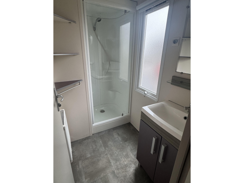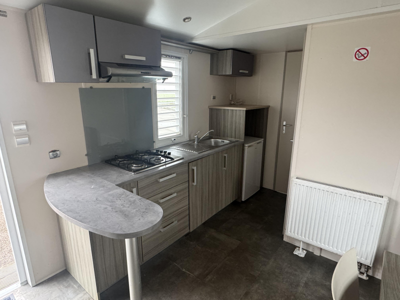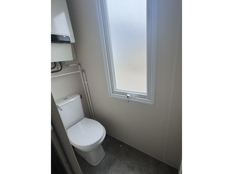 Het chalet is voorzien van kunststof buitenbekleding centrale verwarming en dubbelglas. De woonkamer beschikt over praktische indeling, ondanks zijn kleine afmeting van alle gemakken voorzien en zelfs een apart toilet.