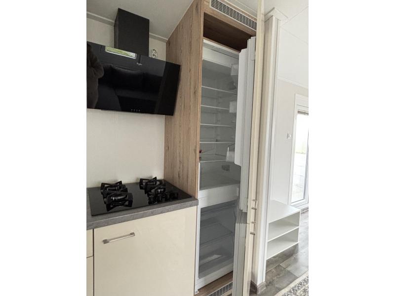 De keuken heeft niet alleen een gasstel met afzuigkap, maar ook een koel-/vriescombinatie waardoor u ook met een langer verblijf genoeg ruimte heeft. Wat de keuken al helemaal luxe maakt, is de vaatwasser!