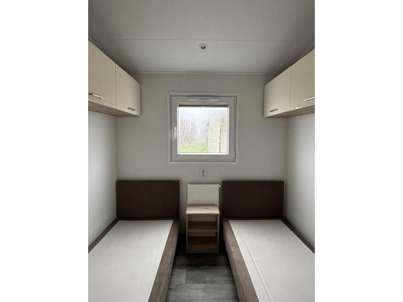 De eerste slaapkamer heeft een groot tweepersoonsbed met daarbij een grote opbergkast. De tweede slaapkamer heeft twee eenpersoonsbedden met daarboven een aantal opbergkasten