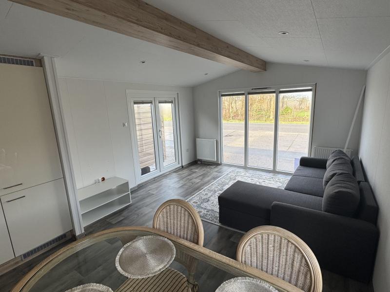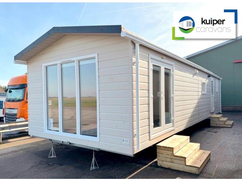 Nu te koop zonder staanplaats bij Kuiper Caravans, een jonge occasion genaamd chalet Unique met kunststof kozijnen, kunststof buitenbeplating en een pannendak.