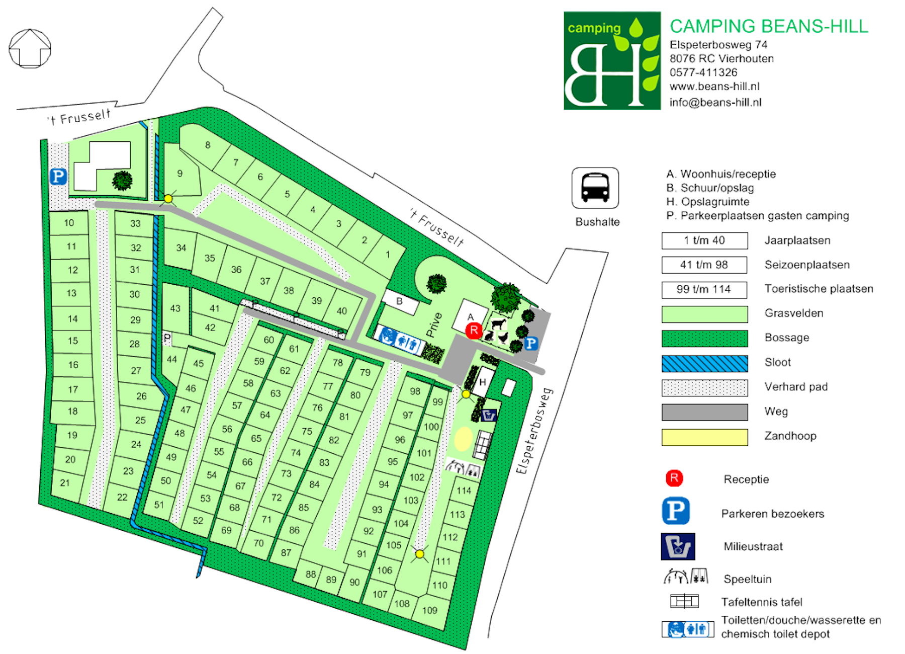 Camping Beans-Hill ligt direct aan het fietsknooppuntennetwerk (knooppunt 14) en op loopafstand van Vierhouten, dat bekendstaat om zijn culinaire aanbod met maar liefst 11 eetgelegenheden. De omgeving leent zich uitstekend voor wandel- en fietstochten door de omliggende bossen: het Vierhouterbos, Vreebos, Elspeterbos en Gortelsebos. Met een uitgebreid netwerk van paden kunnen bezoekers urenlang genieten van de natuur en mogelijk wild spotten zoals edelherten en everzwijnen.